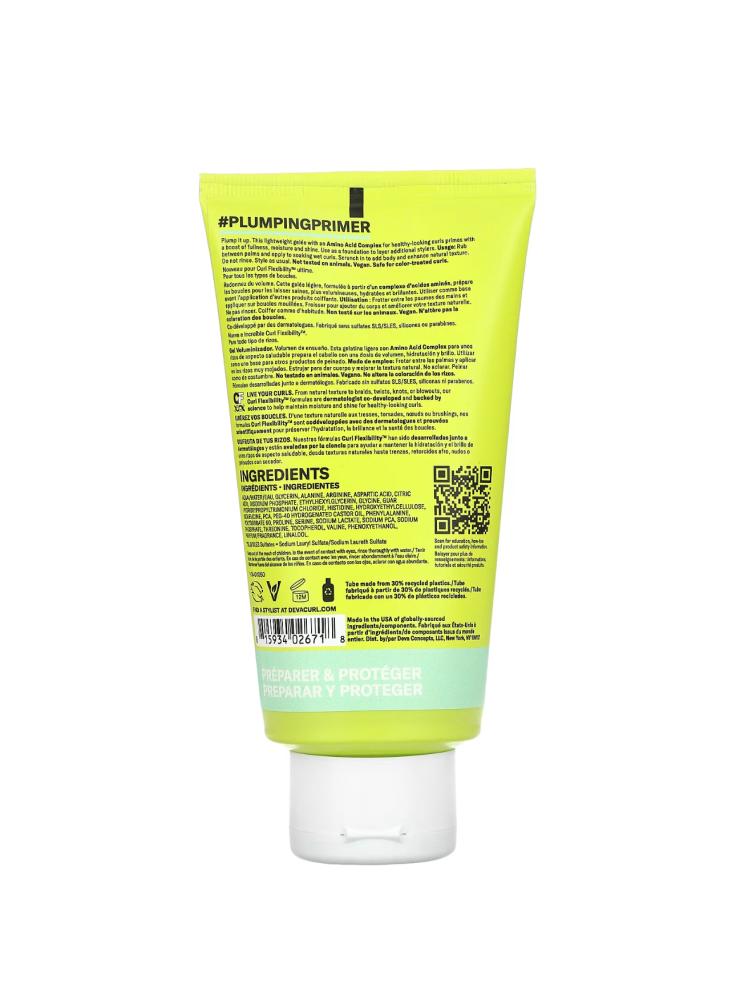 Plumping Primer عبارة عن برايمر خفيف الوزن يعمل على تحضير الشعر قبل التصفيف، بينما جل DevaCurl® عبارة عن أدوات تصفيف توفر التحكم في التجعد والثبات والتحديد.
