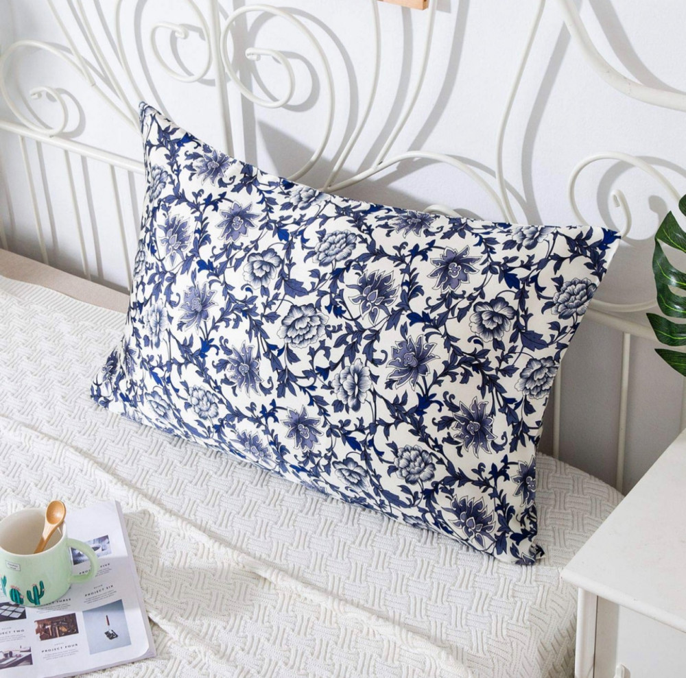 غطاء وسادة مصنوعه من حرير التوت بتصميم هولي كاميليا.