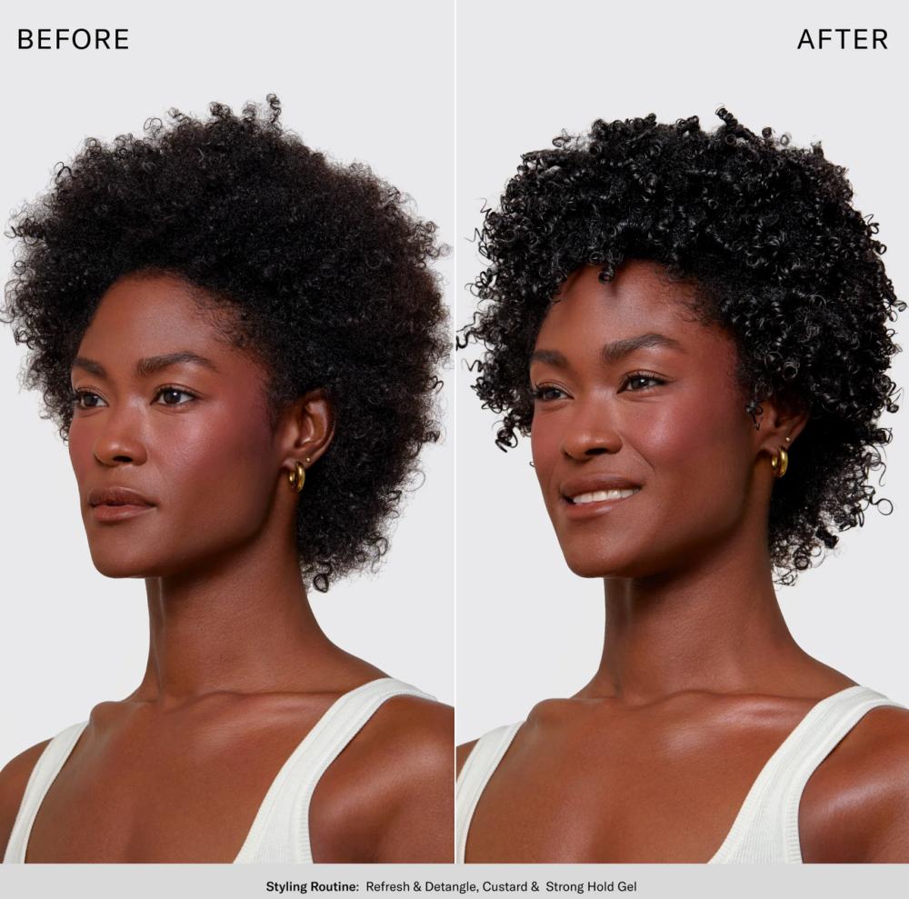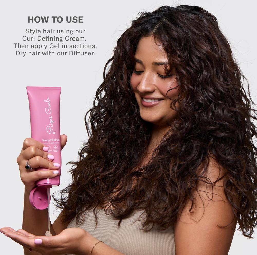 اللمسة الأخيرة بعد كريم التسريح. ضعي كمية من الجل على راحة يدك وقم بفرك المنتج بيديك و عمل (سكرنش) على الشعر من الأسفل الى الاعلى دعيه يجف بالهواء أو جففيه باستخدام المجفف الهوائي ( ديفيوزر ) ضعي منتجًا إضافيًا على المناطق التي تتطلب مزيدًا من الرطوبة والثبات.