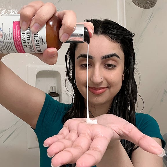 مرري المنتج على الشعر المبلل في أقسام لتوزيعه بالتساوي.