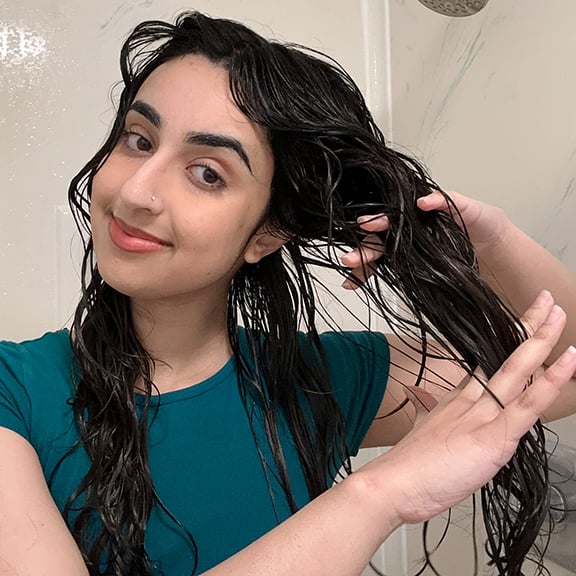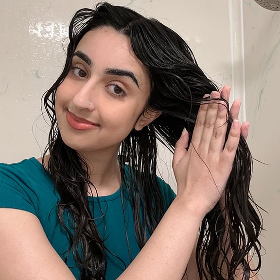 استخدمي طريقة "اليدين المتصلتين" لتنعيم خصلات الشعر. يساعد هذا على غلق البشرة وتقليل التجعد!