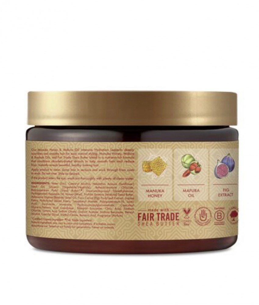 Intensely hydrating and caring manuka honey and mafura oil deeply nourish and smooth hair for effortless natural styling. Manuka honey, mafura and baobab oils, and fair trade shea butter blend into a nutrient-rich formula that hydrates overly dry strands to help smooth hair and reduce frizz. Instantly reveals beautiful, healthy-looking hair.