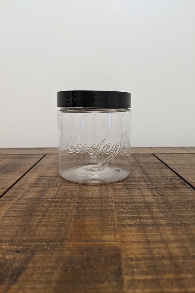 16-ounce reusable plastic jar embossed with the Ecoslay logo.