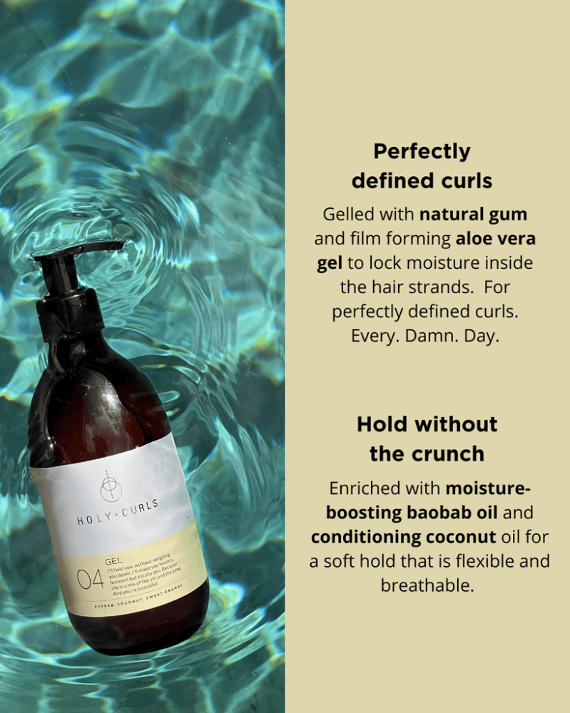 Gel with natural mucilage enriched with baobab oil and coconut oil.